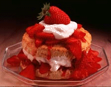 ![]() STRAWBERRY SHORTCAKE 2 1/3 cups Bisquick Original baking mix 1/2 cup milk 3 tbsp sugar 3 tbsp margarine or butter,melted HEAT: oven to 425 degrees. Stir ingredients until soft dough forms. Spread in one ungreased 8" square or round pan. Bake about 15 to 20 min or until golden brown; cool slightly. Serve with strawberries. Drop shortcakes; after stirring drop dough by spoonfuls onto ungreased cookie sheet. Bake 10 to 12 min or until golden brown. |