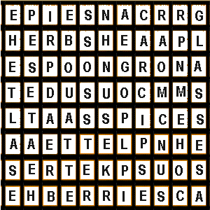=======================DROW CRAMBLES======================== ============UNSCRAMBLE SPICES FOUND IN THE KITCHEN ============= 1.ngierg 2.mannonci 3.vorysa 4.tumeng 5.rogaarnt 6.semorrya 7.lovecs 8.anaivll 9.ssaaic 10.ramomcda 11.icespall ==PUZZLE FOR JAN - LOOK FOR ANSWERS FOR PUZZLE IN MAY==
